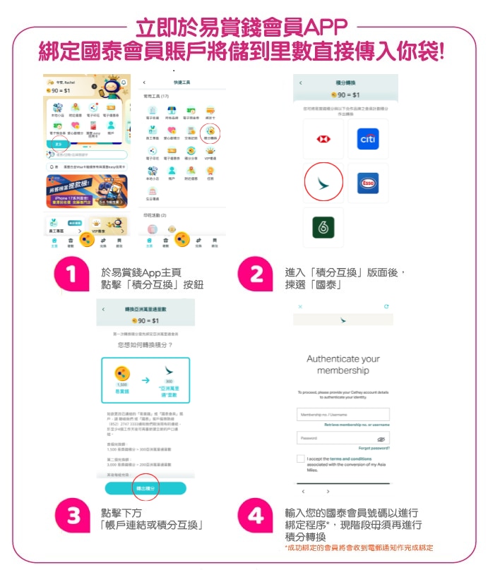 (**請確定你已將易賞錢會員APP綁定埋國泰會員賬戶, 否則將未能獲得「亞洲萬里通」里數獎賞)