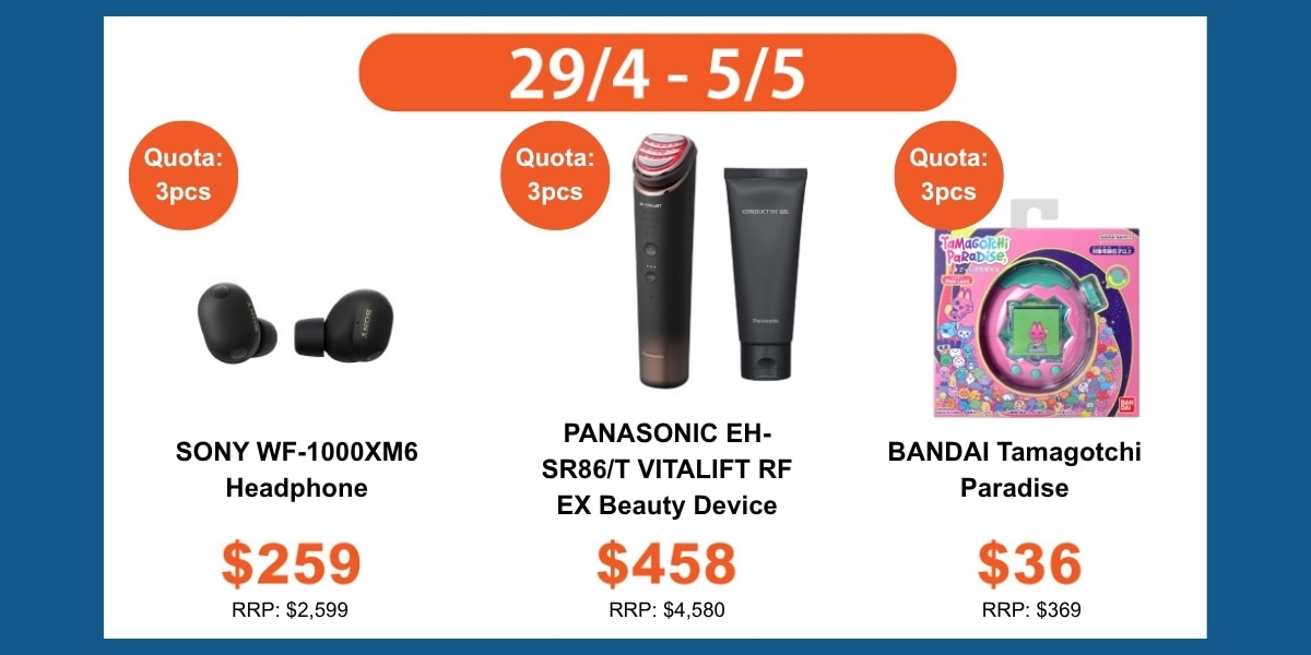 1. Quota of each selected product is limited to 3.
