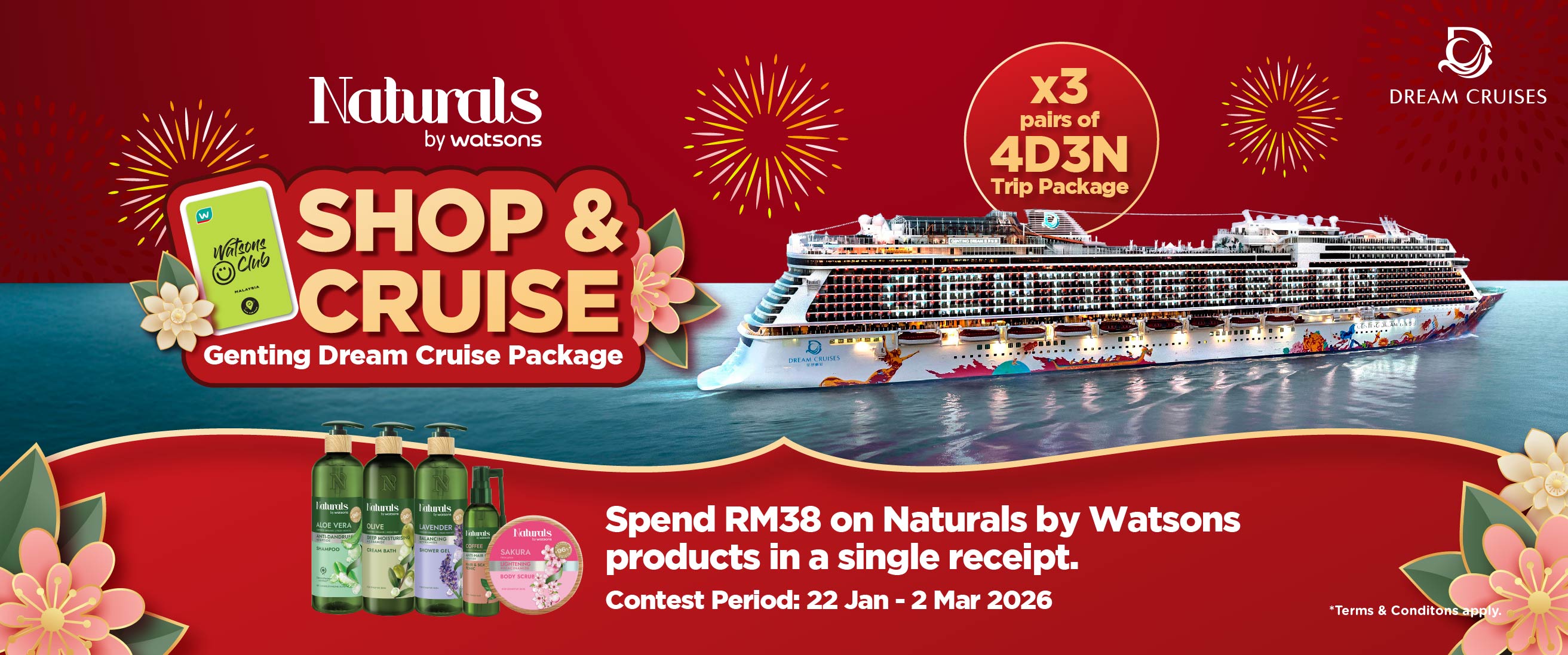 Watsons club members spend RM38 & above on Naturals by Watsons products in store or online to participate!